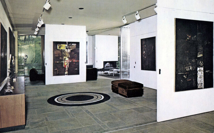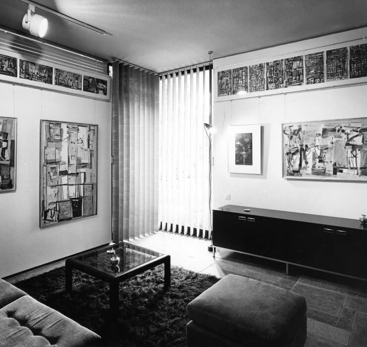 Large halls with innovative sliding wall surfaces were created on the ground floor, while an atrium with excellent lighting housed panels that flipped through like a large book, presenting works from the period 1954-1959.